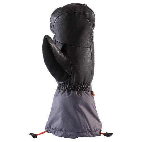 The palm of mitt is made from leather, with reinforcements making it extra durable for rope, ice axe use.