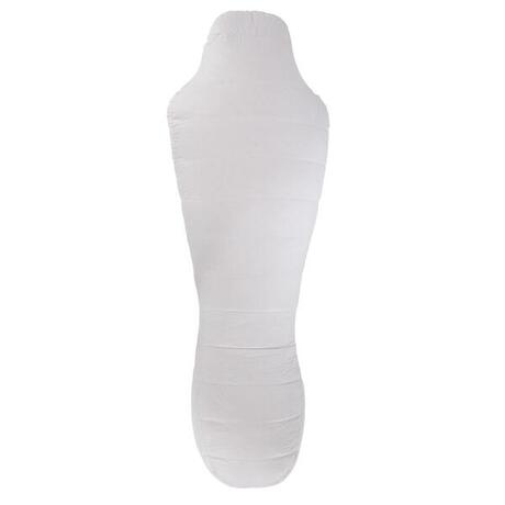 Mummy shape: Shoulder width (80 cm in size L) and tapers down towards feet with room to move but prevent heat loss at feet (20 cm in size L).