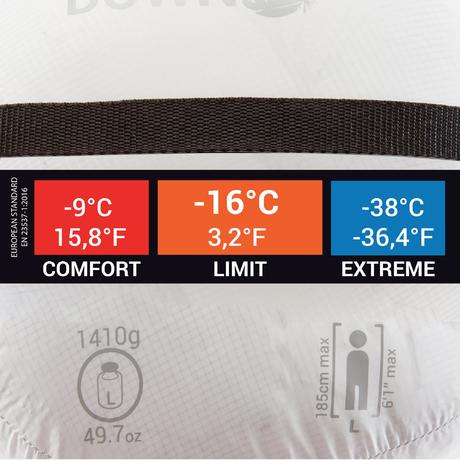 We display on all our sleeping bags, the temperature ratings tested in an independent lab (AITEX) based on European Standard EN 13537 (2016).
